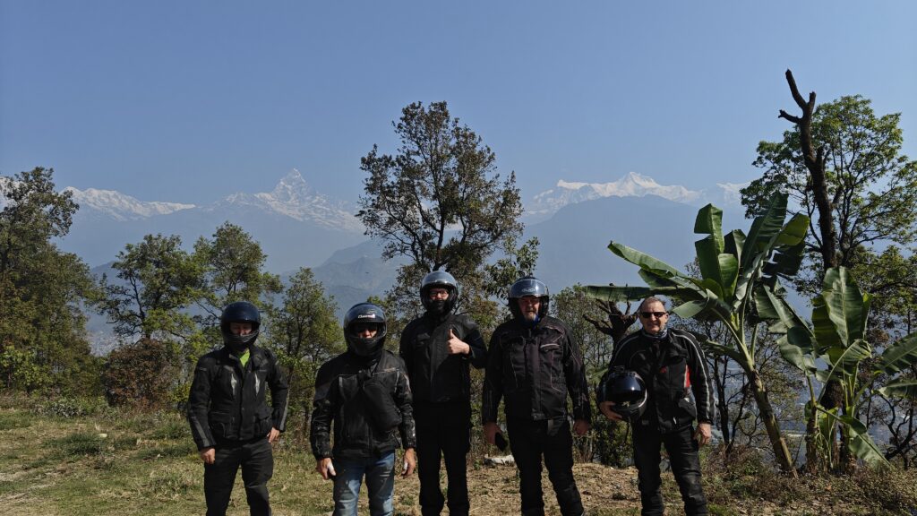 Lets say, the real fun is just about to begin. We head out of crowded Pokhara, quickly diverting towards Sarangkot where a series of sharp switchbacks quickly ascends on narrow tarmac towards one of the popular look out points near Pokhara. Stunning views of the Annapurna range are often times, your backdrop as you ascend the road, each turn bringing the peaks closer and then suddenly further away, almost like an optical illusion. We ride along the ridge for several KM with views of rural and agricultural Nepal, a sharp contrast to the big city vibes that we experience in Kathmandu and Pokhara.